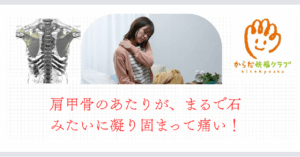 肩甲骨周りが 凝っている・硬い・痛い 公開日:2025年8月24日 肩甲骨の凝りや痛みは、単なる肩こりの延長ではなく、骨盤や背骨の歪み、姿勢の乱れから生じることが多いです。 整体では、骨盤から背骨、肋骨、肩甲骨と全身を整えることで、根本的な改善を目指します。 投稿ナビゲーション 肩甲骨の硬さ・痛みの原因と整体での改善法|小倉北区の整体院から解説